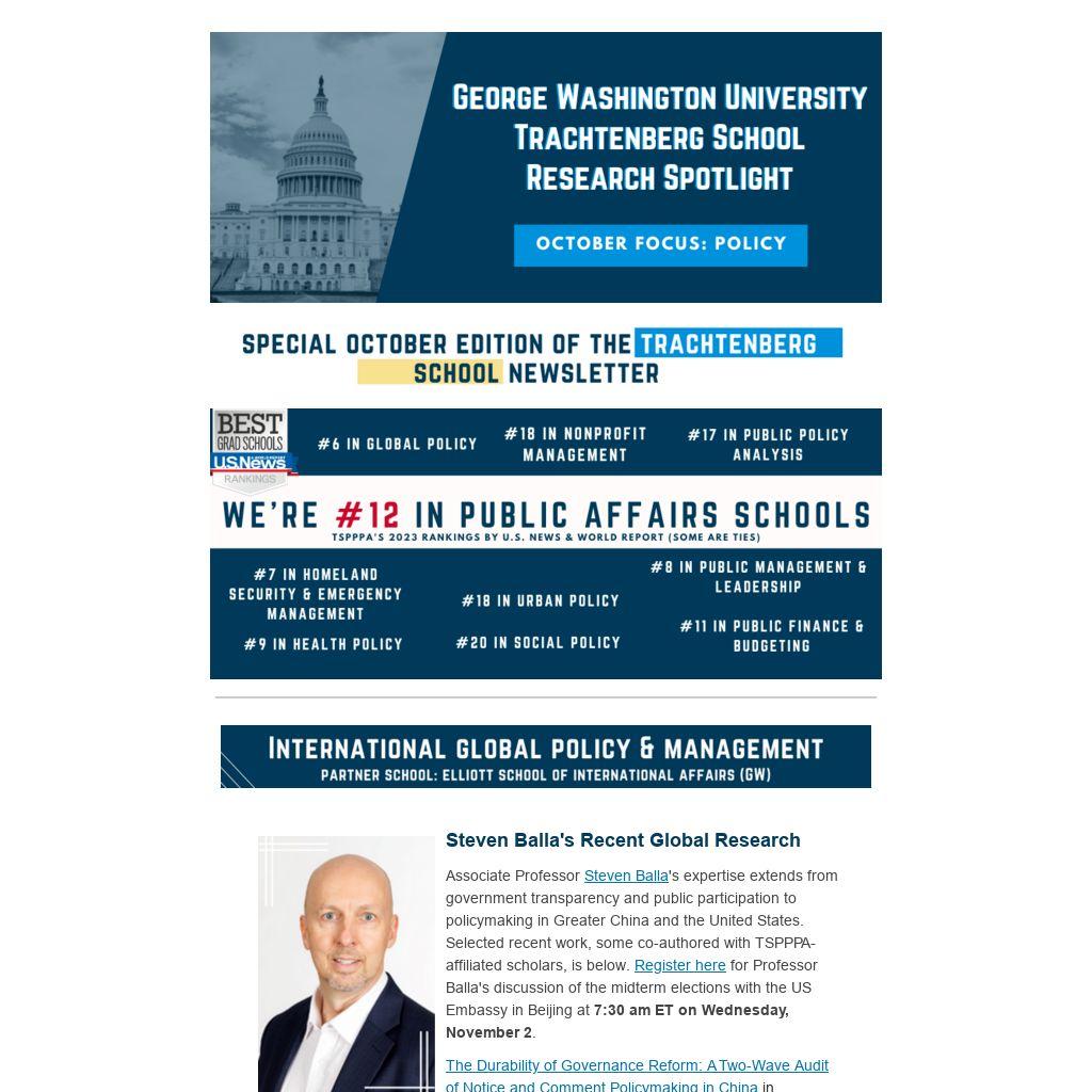 Associate Professor Steven Balla's expertise extends from government transparency and public participation to policymaking in Greater China and the United States. Selected recent work, some co-authored with TSPPPA-affiliated scholars, is below. Register here for Professor Balla's discussion of the midterm elections with the US Embassy in Beijing at 7:30 am ET on Wednesday, November 2.