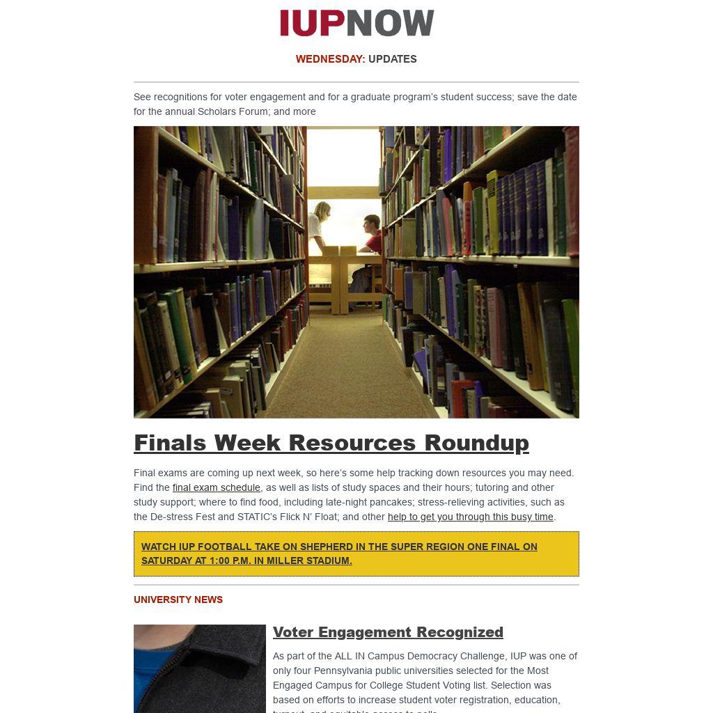 As part of the ALL IN Campus Democracy Challenge, IUP was one of only four Pennsylvania public universities selected for the Most Engaged Campus for College Student Voting list. Selection was based on efforts to increase student voter registration, education, turnout, and equitable access to polls.
