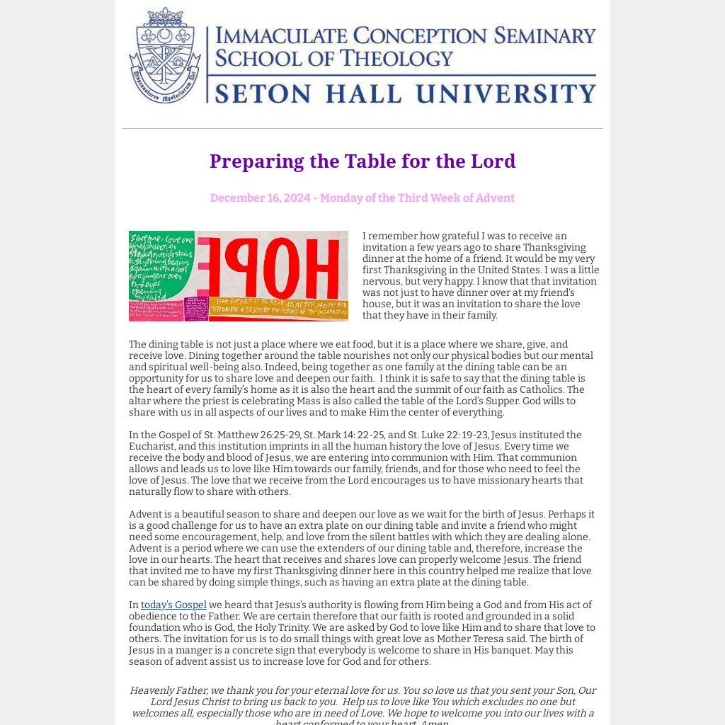 Advent is a beautiful season to share and deepen our love as we wait for the birth of Jesus. Perhaps it is a good challenge for us to have an extra plate on our dining table and invite a friend who might need some encouragement, help, and love from the silent battles with which they are dealing alone. Advent is a period where we can use the extenders of our dining table and, therefore, increase the love in our hearts. The heart that receives and shares love can properly welcome Jesus. The friend that invited me to have my first Thanksgiving dinner here in this country helped me realize that love can be shared by doing simple things, such as having an extra plate at the dining table.