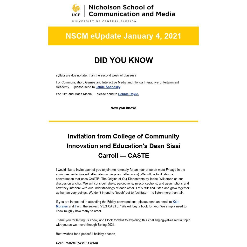 Dear COS Faculty, Research and Facilities Support Staff,