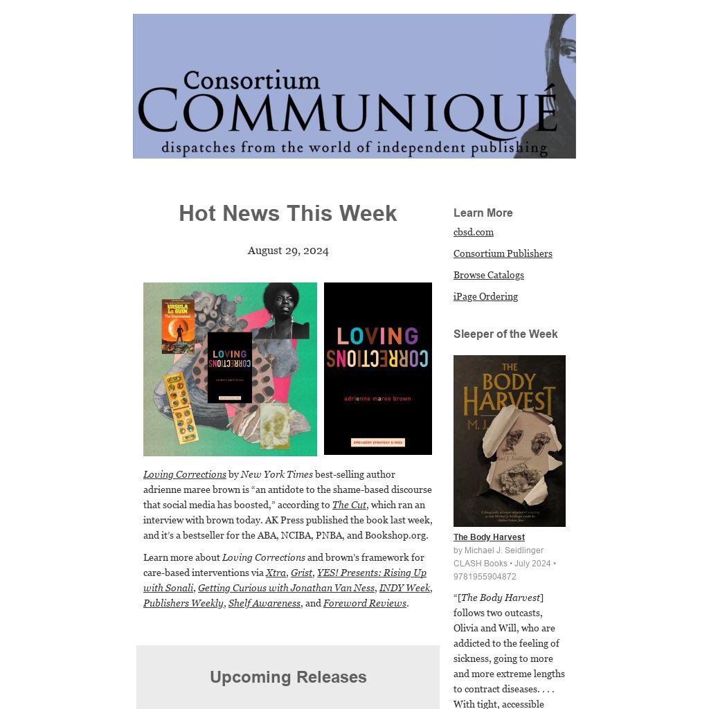 ABA, NCIBA, PNBA, and Bookshop.org Bestseller Loving Corrections by adrienne maree brown AK Press • August 2024 • 9781849355544