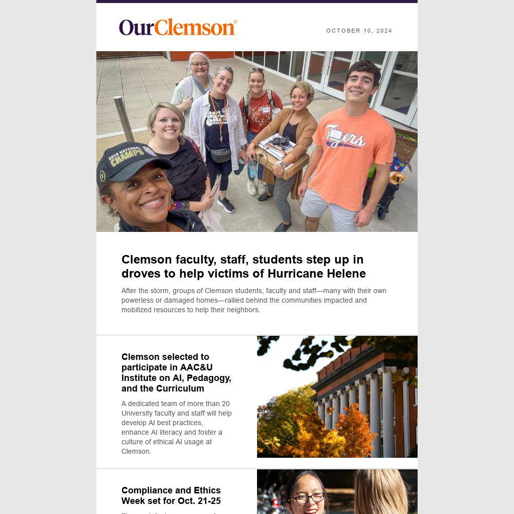 After the storm, groups of Clemson students, faculty and staff—many with their own powerless or damaged homes—rallied behind the communities impacted and mobilized resources to help their neighbors.