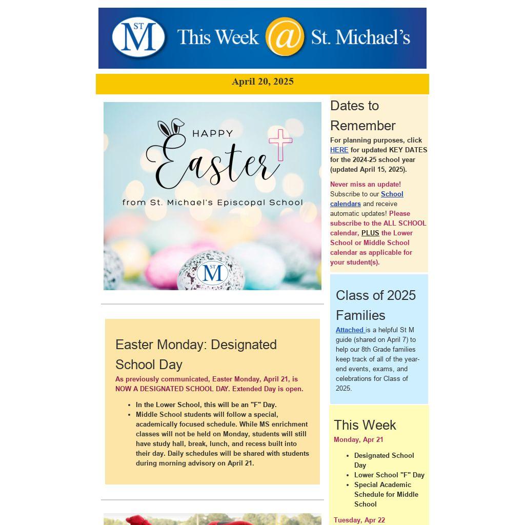 Attached is a helpful St M guide (shared on April 7) to help our 8th Grade families keep track of all of the year-end events, exams, and celebrations for Class of 2025.