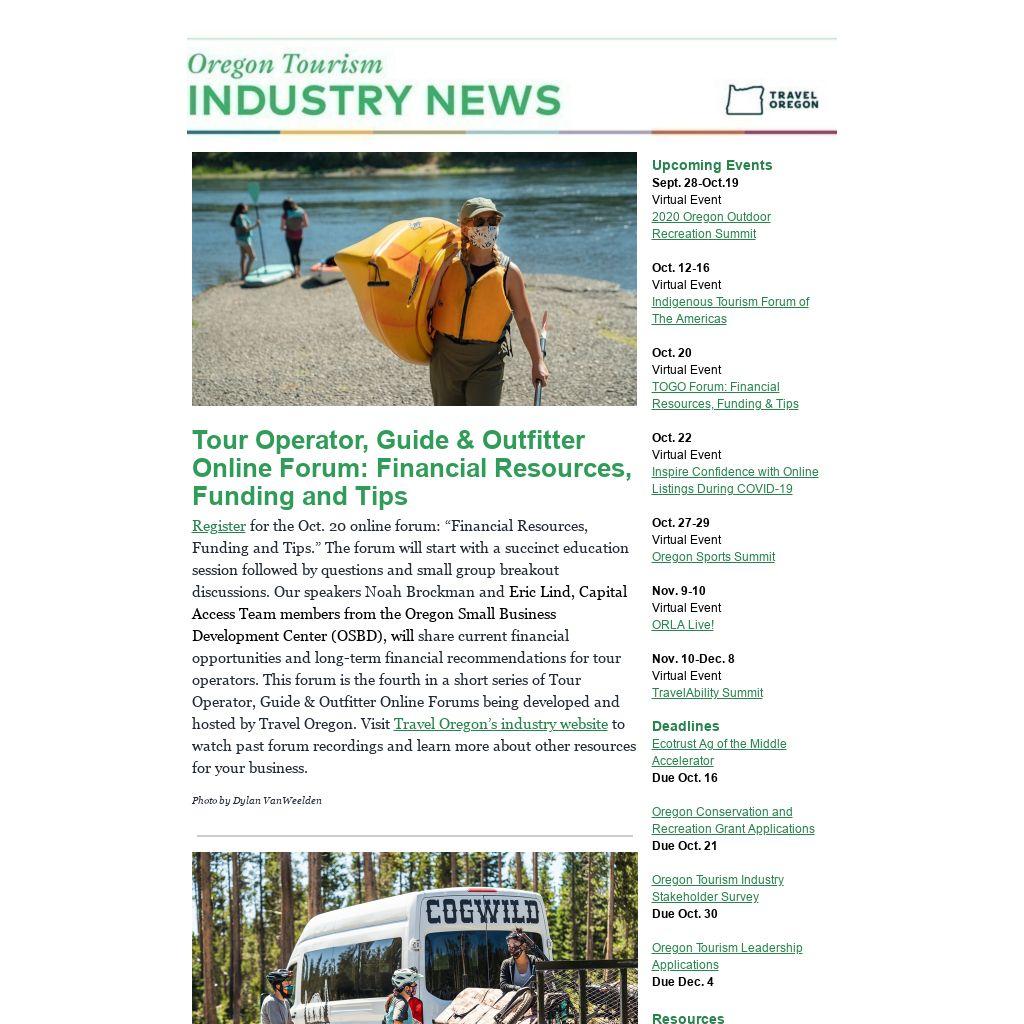 The Eugene, Cascades & Coast Sports Commission is excited to announce that registration is now open for the 2020 Oregon Sports Summit. This year's event will be a virtual experience presented over three successive mornings Oct. 27-29. This event welcomes sports event planners, leaders of sports organizations, sports venue and facility operators, vendors, and others from the Oregon sports community to educate, support and inspire event planners to achieve success.