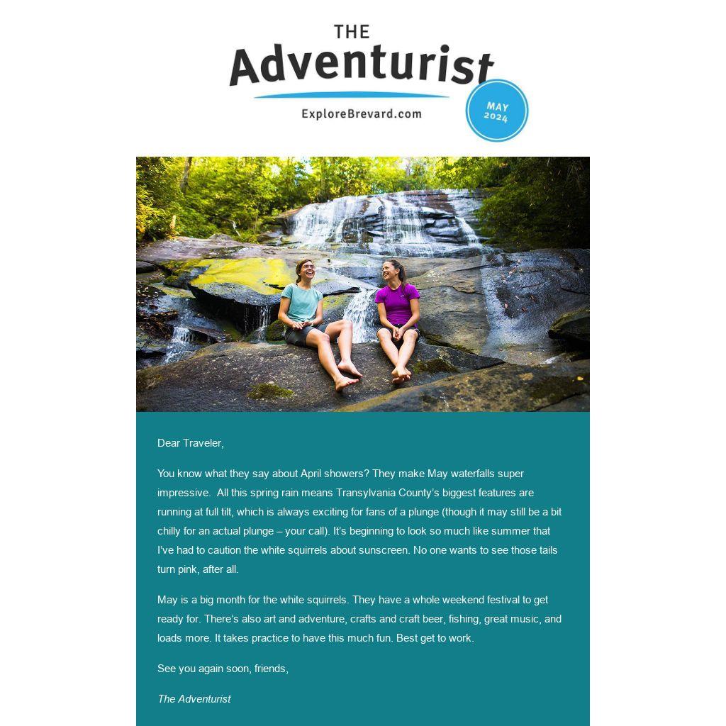 You know what they say about April showers? They make May waterfalls super impressive. All this spring rain means Transylvania County’s biggest features are running at full tilt, which is always exciting for fans of a plunge (though it may still be a bit chilly for an actual plunge – your call). It’s beginning to look so much like summer that I’ve had to caution the white squirrels about sunscreen. No one wants to see those tails turn pink, after all.