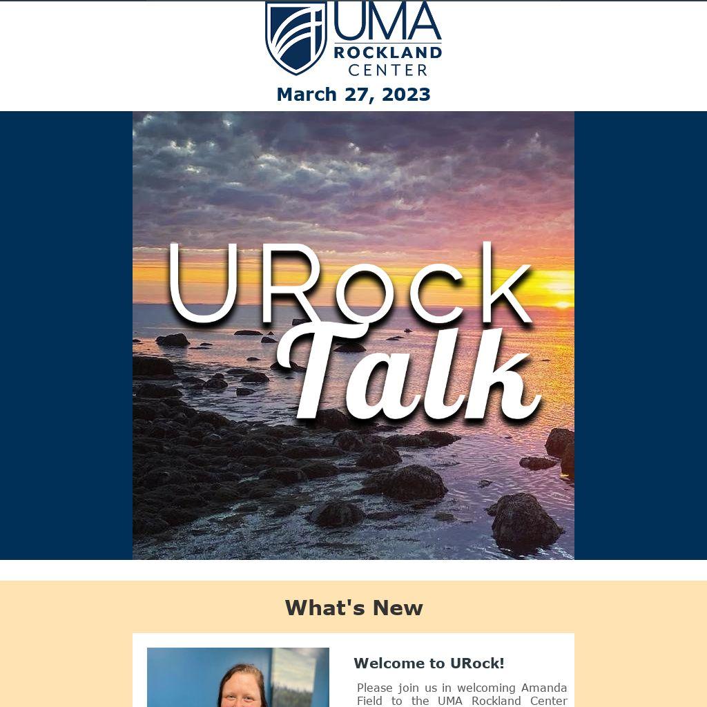 Please join us in welcoming Amanda Field to the UMA Rockland Center staff! Amanda is a UMA Alumni with strong URock ties. She is one of the founders of a local re-entry home for women, has served as an EMT, and has a background in both criminal justice and youth development programming. Amanda will be part of the front office team working afternoons and evenings.