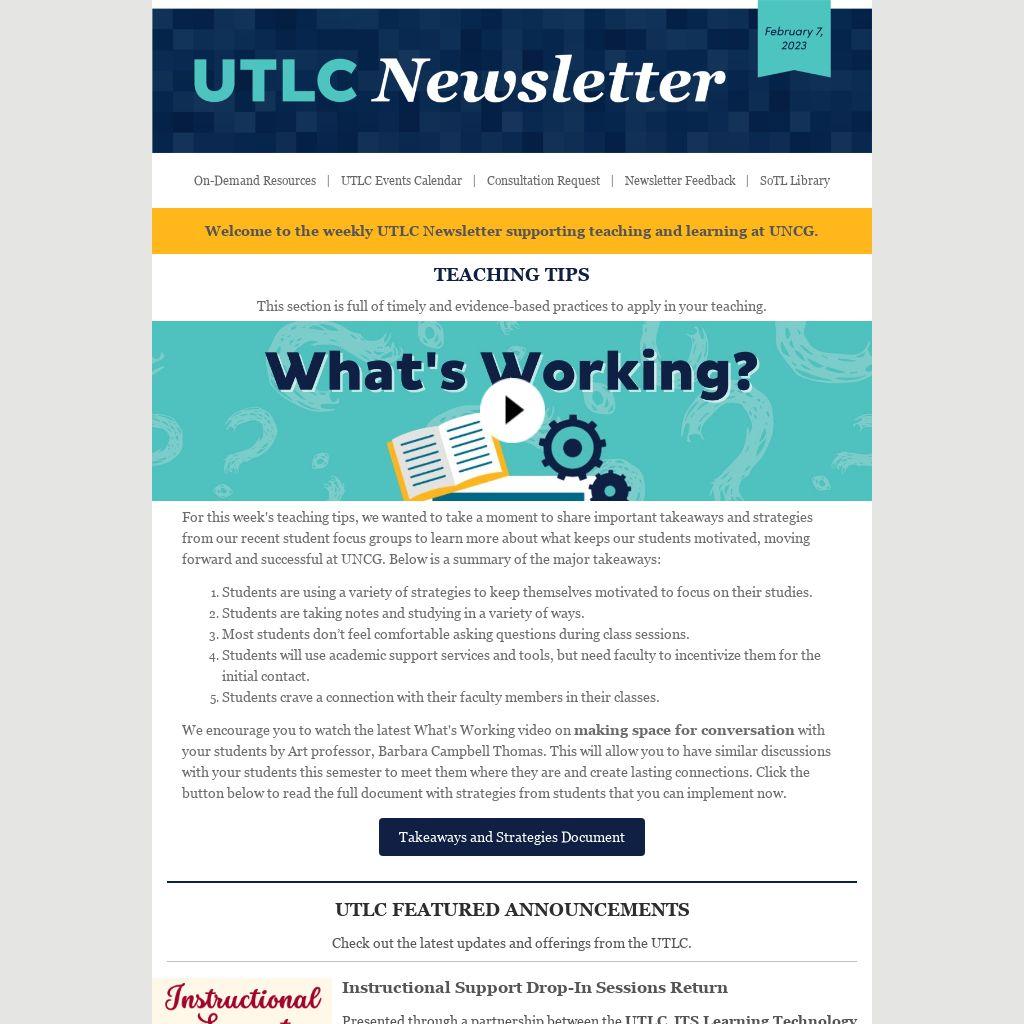 Welcome to the weekly UTLC Newsletter supporting teaching and learning at UNCG.