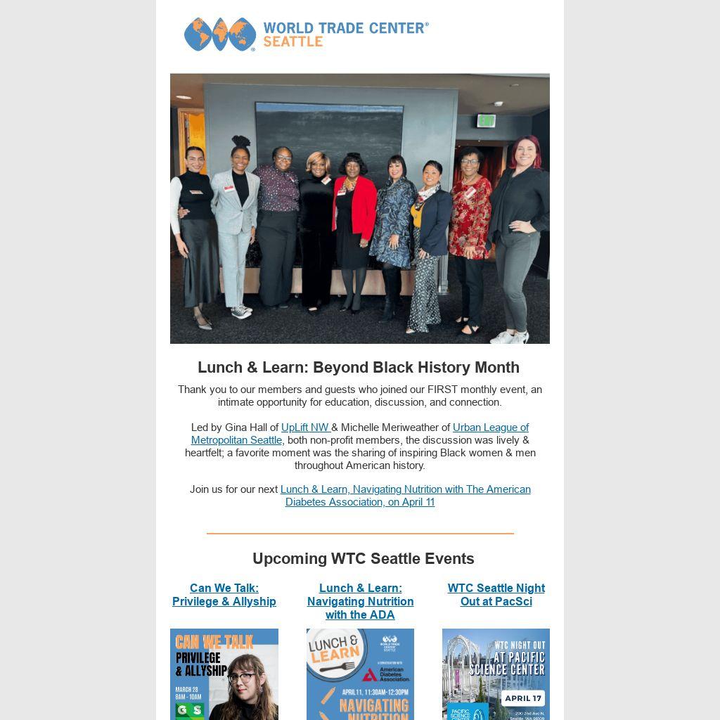 Looking for a space to host your next team meeting or group luncheon? As a WTC Seattle member, you have access to our Dining Room, Touchdown spaces and Boardrooms; perfect for team meetings, corporate luncheons, and more. Contact Alison to discuss what space best fits your needs.