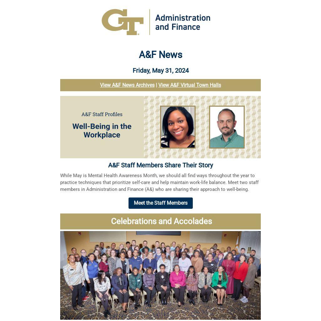 While May is Mental Health Awareness Month, we should all find ways throughout the year to practice techniques that prioritize self-care and help maintain work-life balance. Meet two staff members in Administration and Finance (A&) who are sharing their approach to well-being.