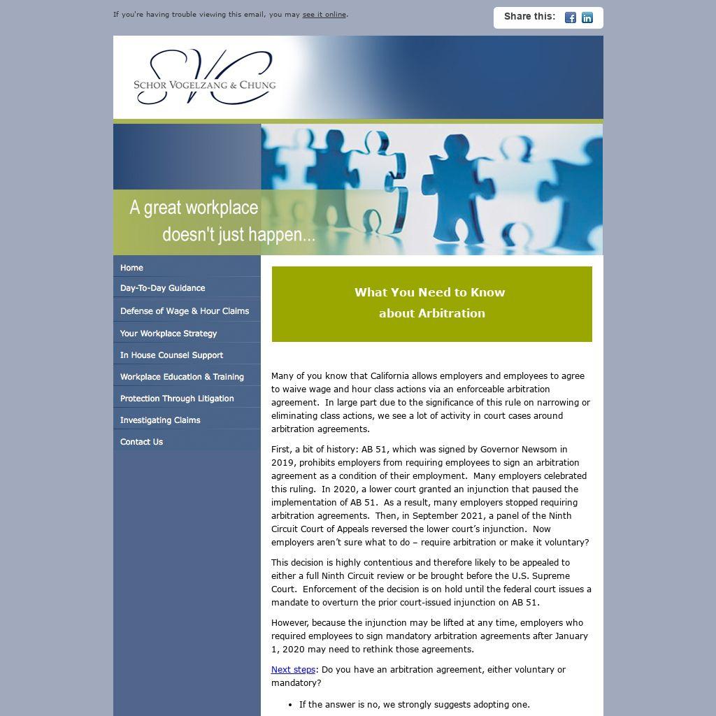 - If you have mandatory arbitration, let's talk about next steps in response to the recent decision.