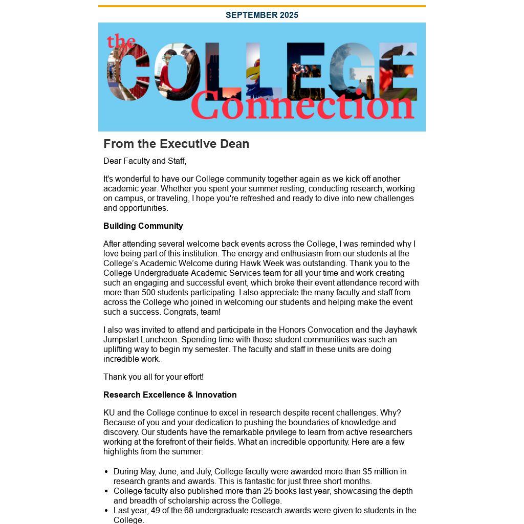 Thank you for your continued commitment to the College. Here's to a successful semester filled with learning, growth, and community.