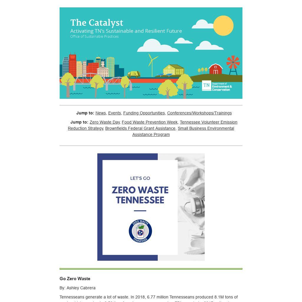 Each year on October 27th, TDEC and its partners celebrate Zero Waste Day. The event aims to raise awareness about waste in Tennessee and educate citizens on actions they can take to reduce it. Help us to celebrate by doing your part to reduce waste in Tennessee!