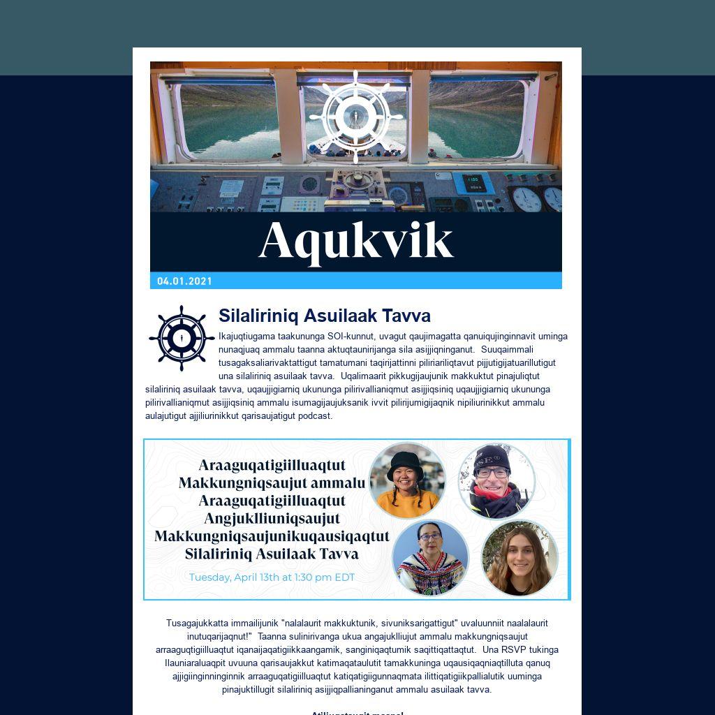 Kingulliqmit titiraqtaujunik saqitittiniaqtugut Akuqvikkut uqausirilualangajavut sanginiqaqninganit atuqsimajanginnik ilittivallianiqmit. Tusaqvigilaukkit aniguisimajut ilaulauqtut tilijausimallutik nanituinnattiaq nunaqjualimaamit, uqalimaakannirunnaqtutit tukisijausimajunik ilinniaqpallialutik pilirilauqtamingnik SOI-kut umiaqjuakkut qaujisaqniq, tautugunnaqtutit qanuq taakua atulauqtamingnit aktuijaulauqninginnik makkuktut, ammalu asikanninginnik!