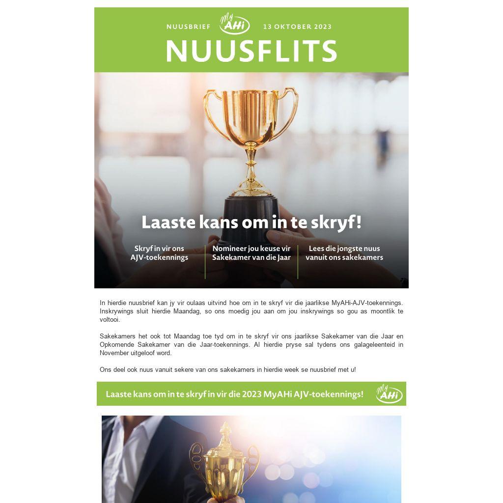 In hierdie nuusbrief kan jy vir oulaas uitvind hoe om in te skryf vir die jaarlikse MyAHi-AJV-toekennings. Inskrywings sluit hierdie Maandag, so ons moedig jou aan om jou inskrywings so gou as moontlik te voltooi.