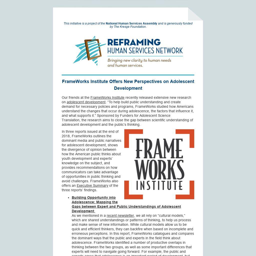 | FrameWorks Institute Offers New Perspectives on Adolescent Development