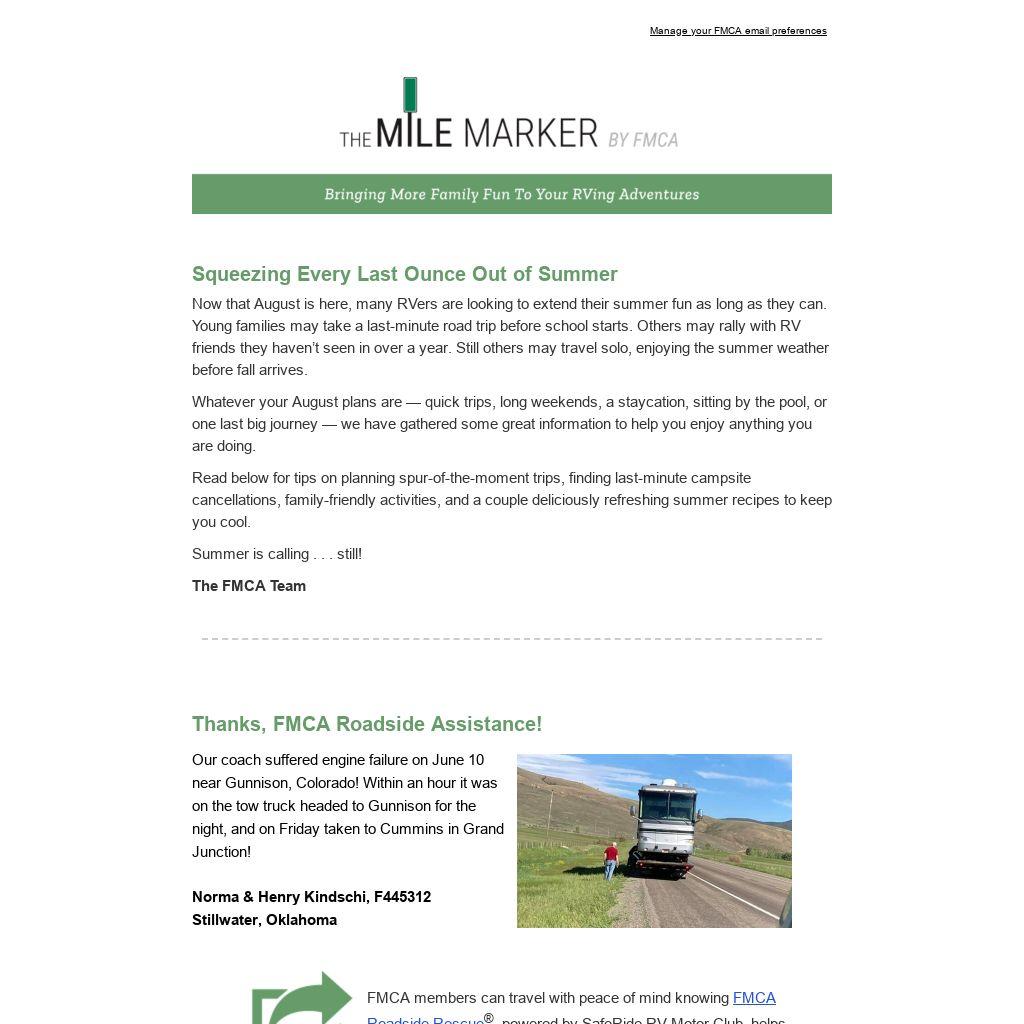 Don't forget to hit the great outdoors with an FMCA membership, now available for only $60! Click here to join.
