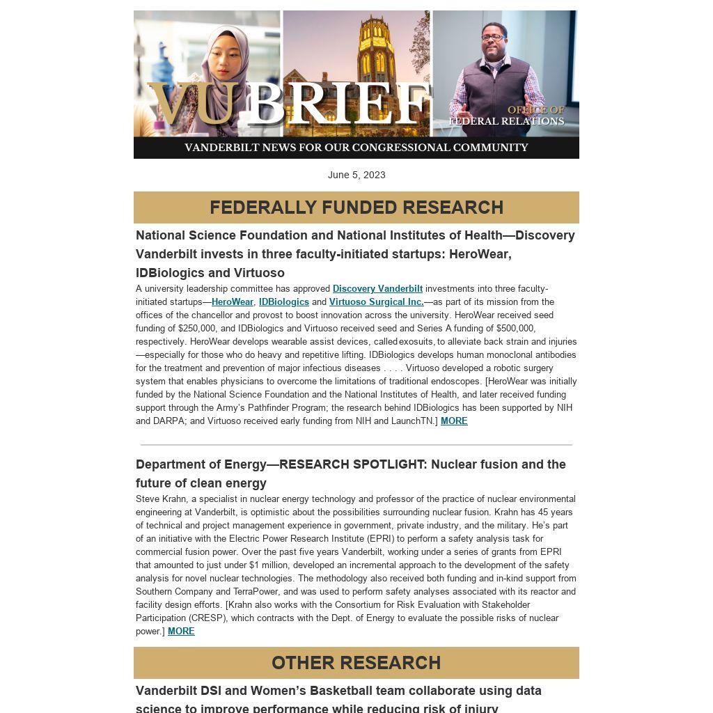 National Science Foundation and National Institutes of Health—Discovery Vanderbilt invests in three faculty-initiated startups: HeroWear, IDBiologics and VirtuosoA university leadership committee has approved Discovery Vanderbilt investments into three faculty-initiated startups— HeroWear, IDBiologics and Virtuoso Surgical Inc.—as part of its mission from the offices of the chancellor and provost to boost innovation across the university. HeroWear received seed funding of $250,000, and IDBiologics and Virtuoso received seed and Series A funding of $500,000, respectively. HeroWear develops wearable assist devices, called exosuits, to alleviate back strain and injuries—especially for those who do heavy and repetitive lifting. IDBiologics develops human monoclonal antibodies for the treatment and prevention of major infectious diseases . . . . Virtuoso developed a robotic surgery system that enables physicians to overcome the limitations of traditional endoscopes. [HeroWear was initially funded by the National Science Foundation and the National Institutes of Health, and later received funding support through the Army’s Pathfinder Program; the research behind IDBiologics has been supported by NIH and DARPA; and Virtuoso received early funding from NIH and LaunchTN.] MORE