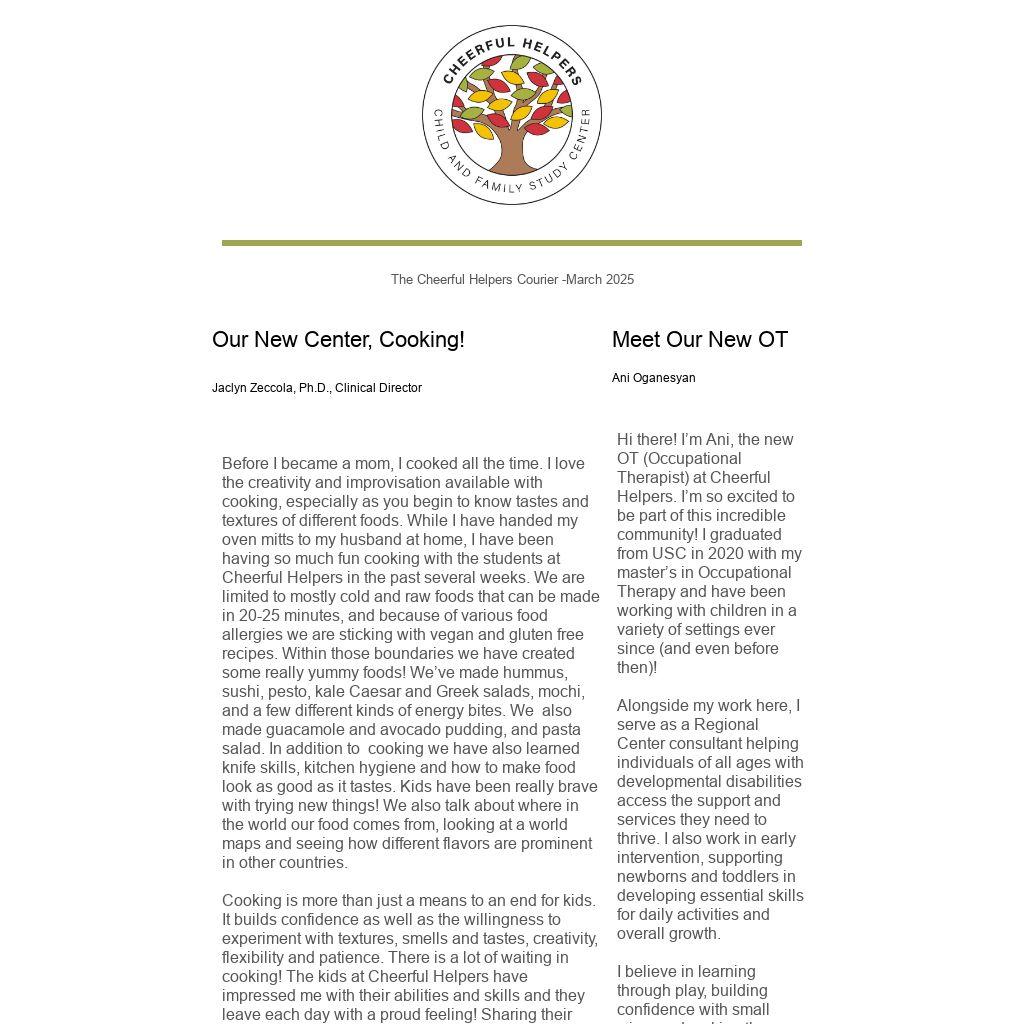 Hi there! I’m Ani, the new OT (Occupational Therapist) at Cheerful Helpers. I’m so excited to be part of this incredible community! I graduated from USC in 2020 with my master’s in Occupational Therapy and have been working with children in a variety of settings ever since (and even before then)!
