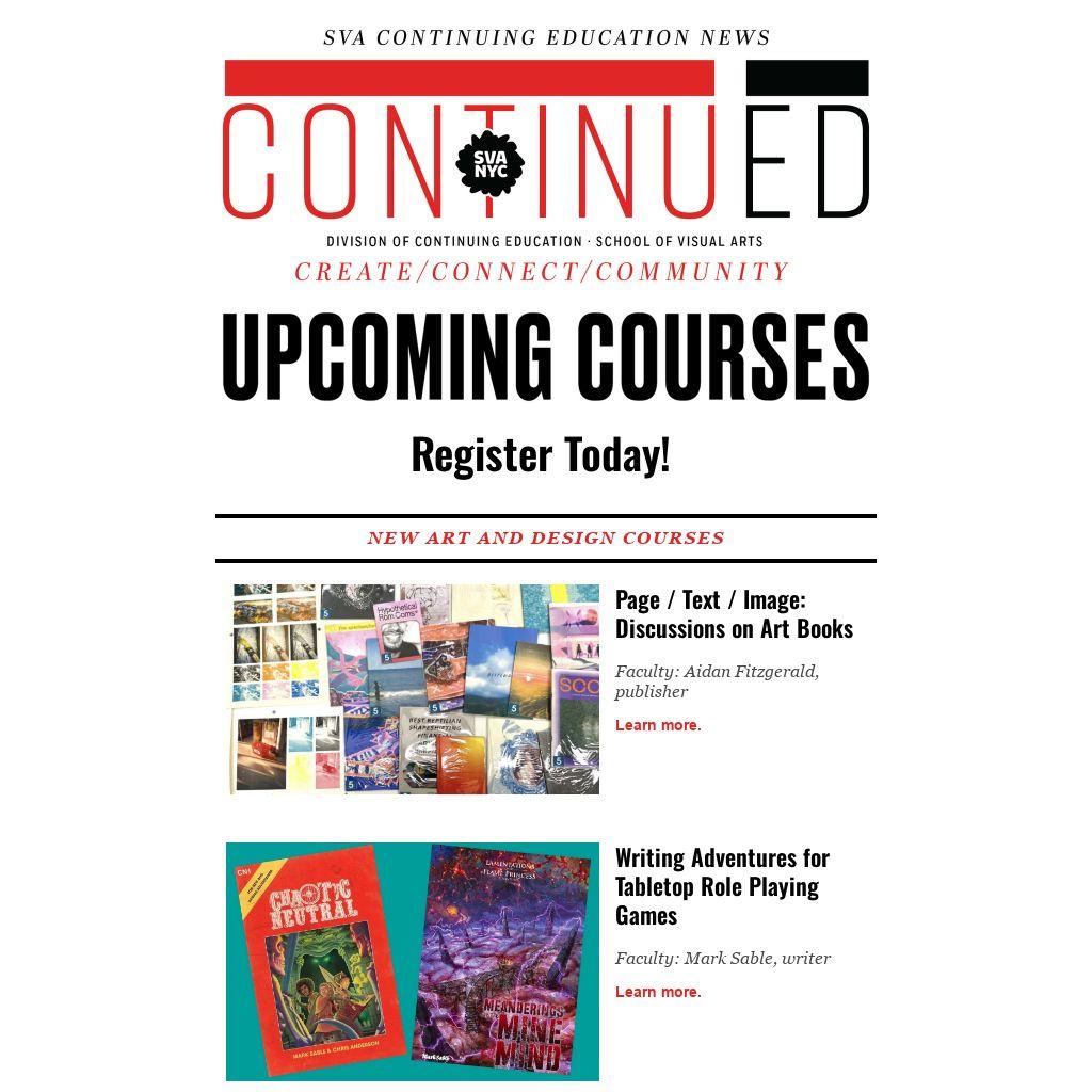 VIEW ALL OUR COURSES ON SVA.EDU/CE