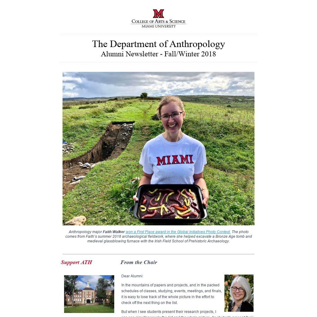 Two recent Miami Anthropology graduates exemplify Dr. Marchant’s impact. Nicole Schapker (2018) currently works as a research assistant for a behavioral ecology project studying black howlers (Alouatta pigra) at Palenque National Park in Chiapas, Mexico. Her work there is supervised by Dr. Sarie Van Belle (University of Texas- Austin), and next year she hopes to begin her Ph.D. studies.