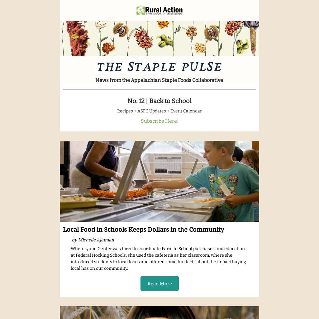 | Interested in local food systems? Curious about how food hubs are created to serve local communities? We will hear from Rural Action’s Director of Sustainable Agriculture and Auction Manager about the auction’s history and growth, and then stay for a community potluck!