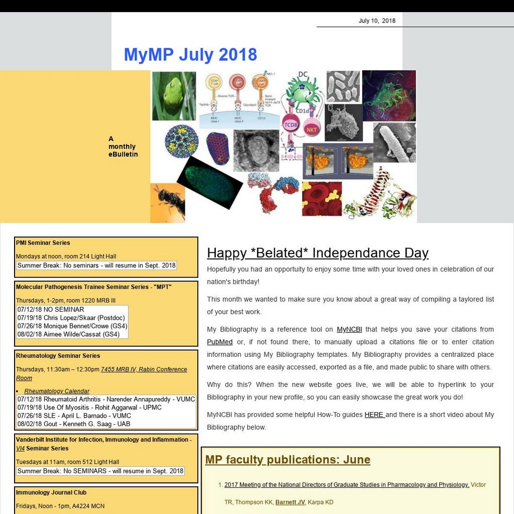 Immunology Journal Club Calendar 07/13/18 Sebastian Joyce,Ph.D. 07/20/18 Ali Nazmi Abdelnabi, Ph.D. 07/27/18 Jamie Felton, M.D. 08/03/18 Louise Rollins-Smith, Ph.D. 08/10/18 Ariel Raybuck 08/17/18 Naveen Suryadevara, Ph.D. 08/24/18 Marc Johnson 08/31/18 Shawna McLetchie