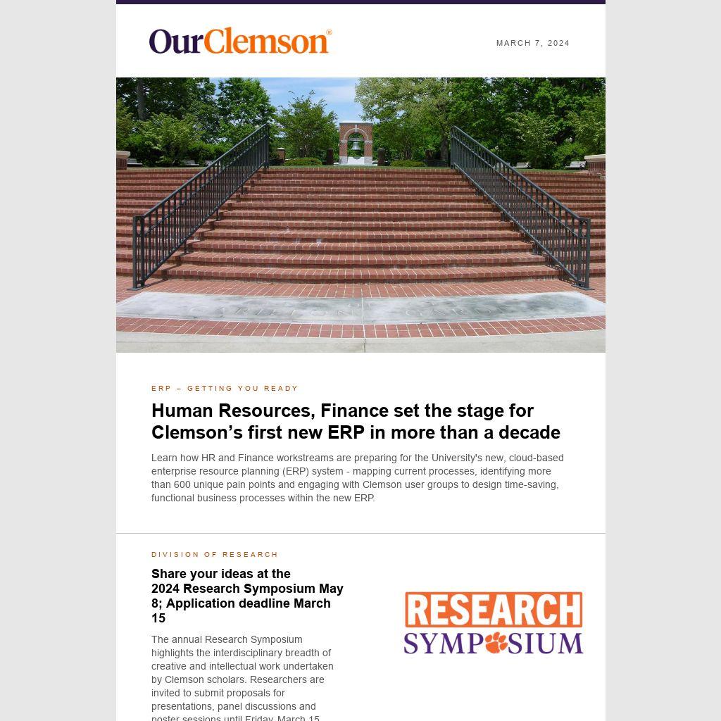 Learn how HR and Finance workstreams are preparing for the University's new, cloud-based enterprise resource planning (ERP) system - mapping current processes, identifying more than 600 unique pain points and engaging with Clemson user groups to design time-saving, functional business processes within the new ERP.