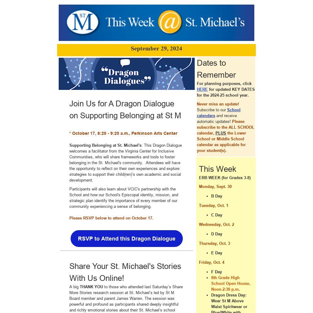 The evening will be led by Dr. Kim Hilton, St M's Consulting Psychologist. Michael Jones, Director of Technology, and Bob Gregg, Head of School. More details to follow.