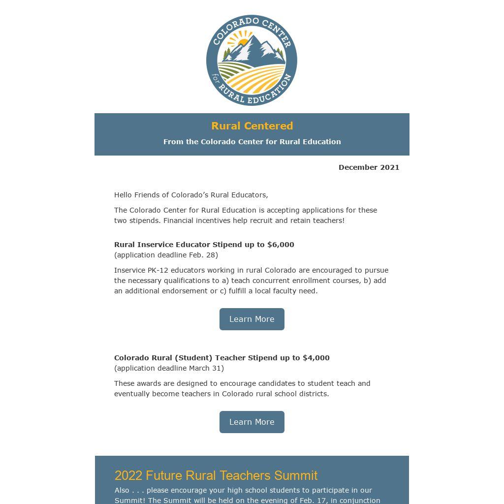 The Colorado Center for Rural Education is accepting applications for these two stipends. Financial incentives help recruit and retain teachers!