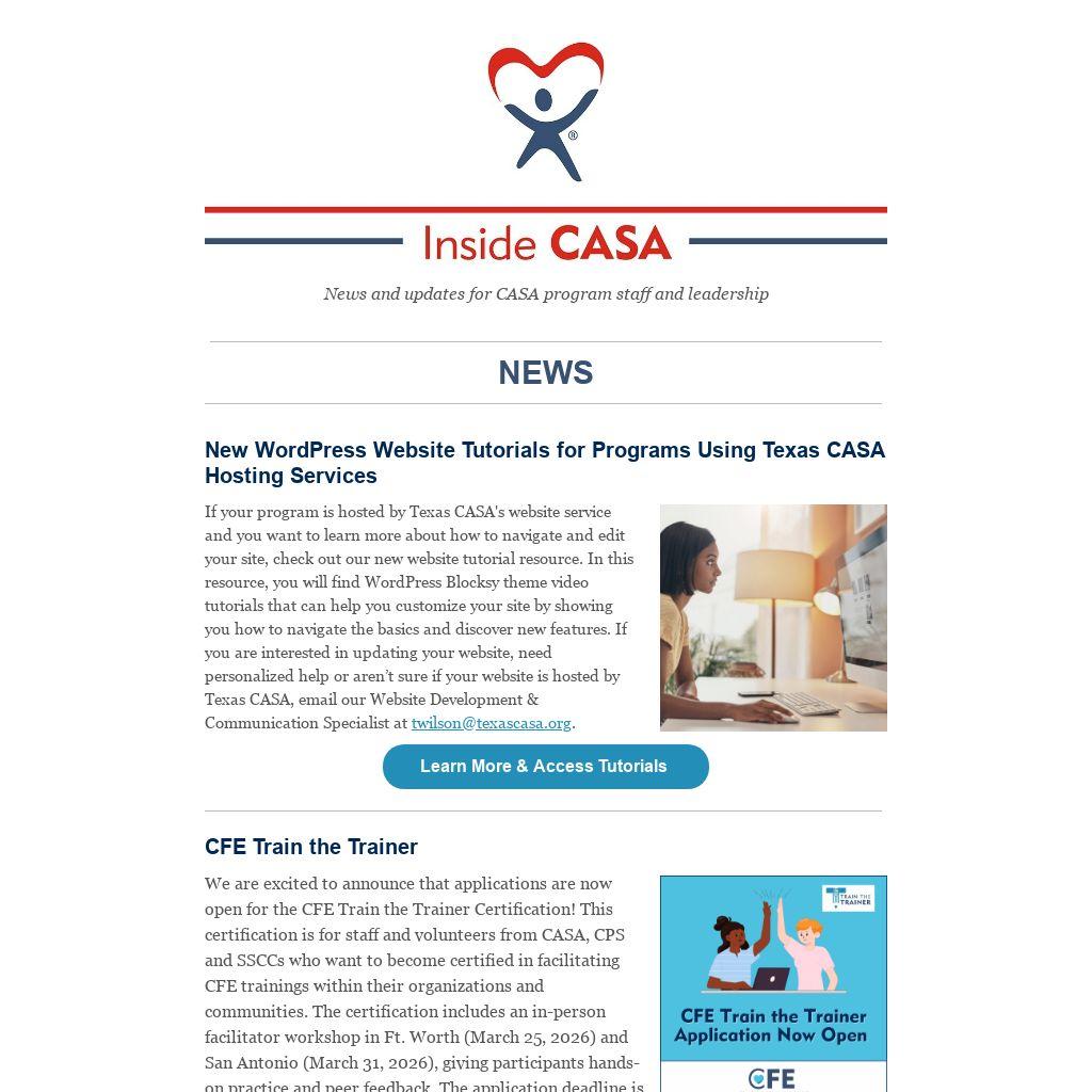News and updates for CASA program staff and leadership
