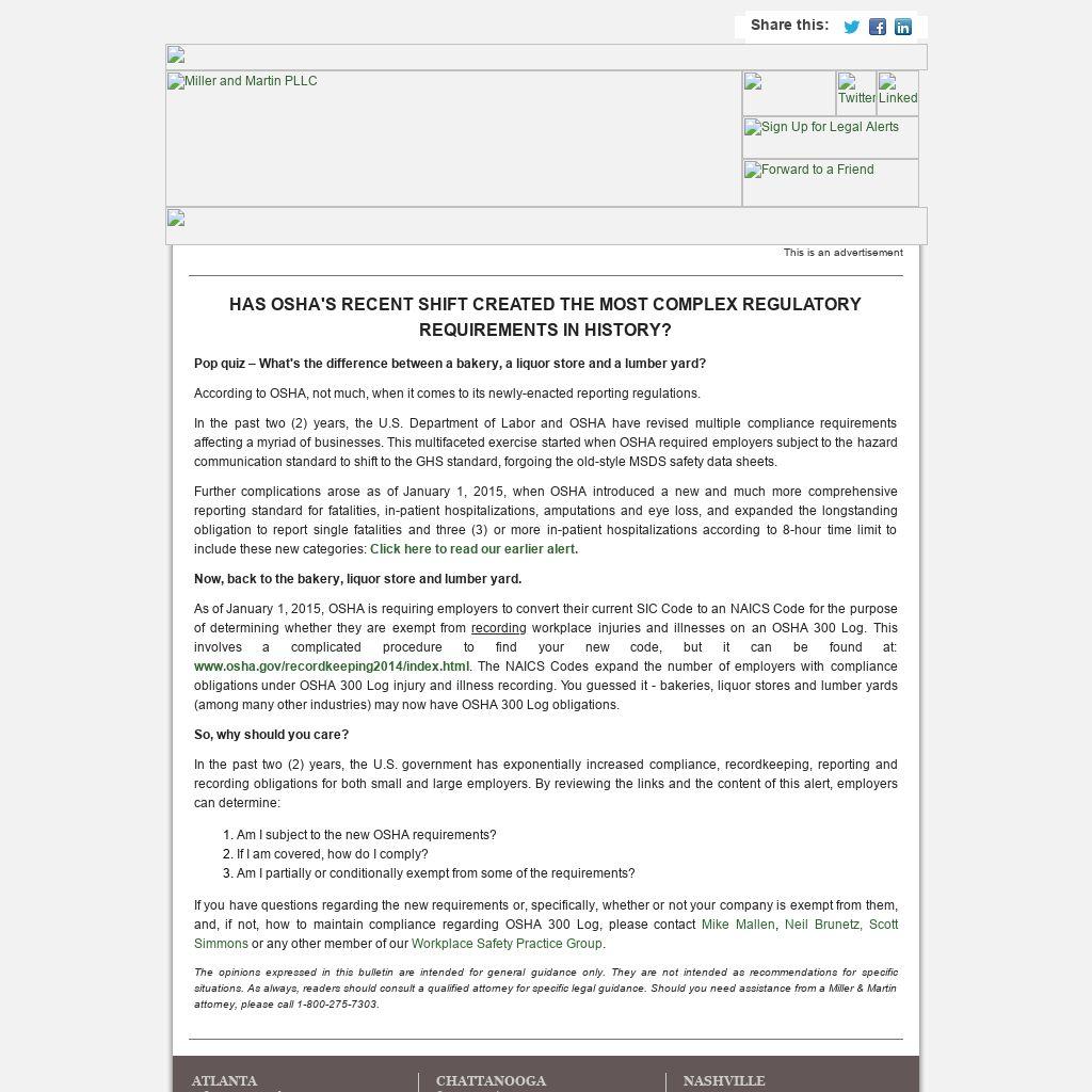 The opinions expressed in this bulletin are intended for general guidance only. They are not intended as recommendations for specific situations. As always, readers should consult a qualified attorney for specific legal guidance. Should you need assistance from a Miller & Martin attorney, please call 1-800-275-7303.