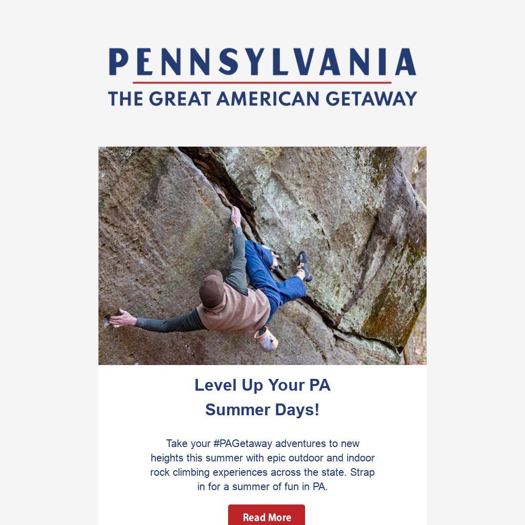 Take your #PAGetaway adventures to new heights this summer with epic outdoor and indoor rock climbing experiences across the state. Strap in for a summer of fun in PA.