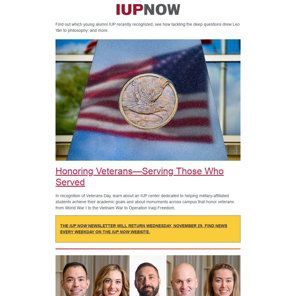 In recognition of Veterans Day, learn about an IUP center dedicated to helping military-affiliated students achieve their academic goals and about monuments across campus that honor veterans from World War I to the Vietnam War to Operation Iraqi Freedom.