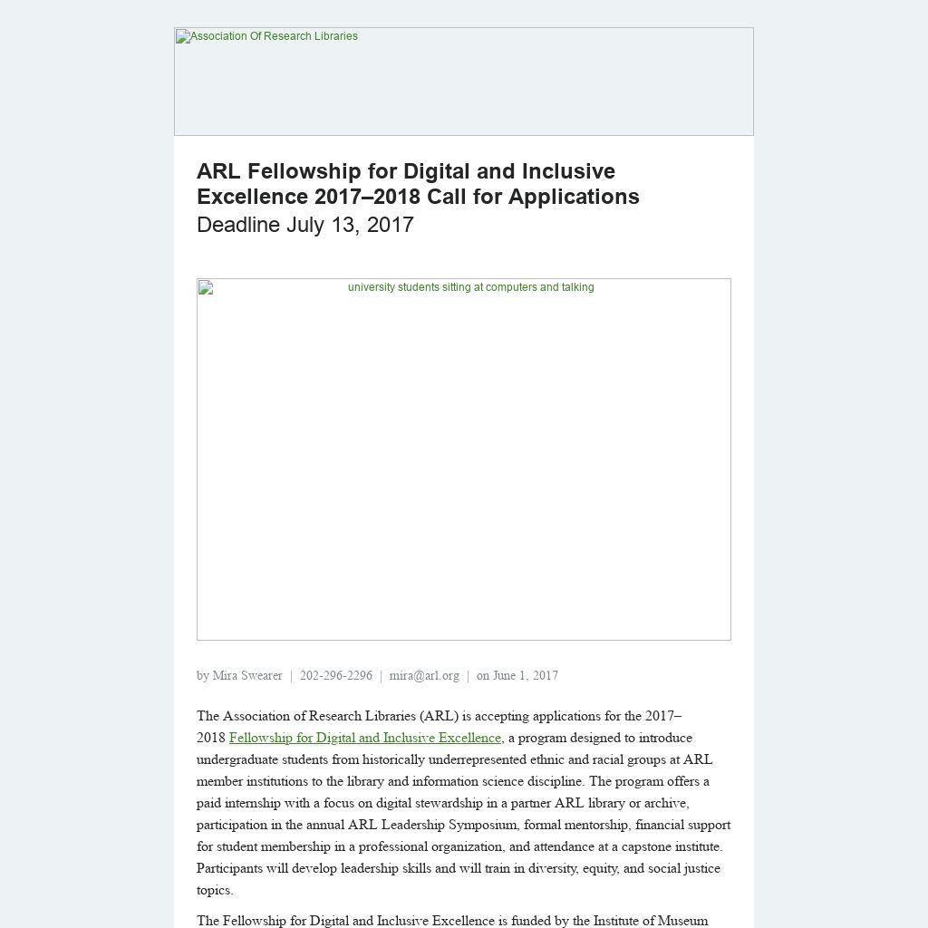 The Association of Research Libraries (ARL) is accepting applications for the 2017–2018