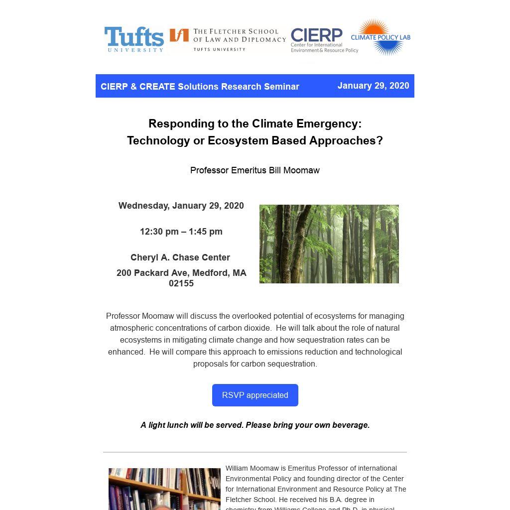 William Moomaw is Emeritus Professor of international Environmental Policy and founding director of the Center for International Environment and Resource Policy at The Fletcher School. He received his B.A. degree in chemistry from Williams College and Ph.D. in physical chemistry from MIT. He had a 26-year career in chemistry and environmental studies at Williams College, where he directed the Center for Environmental Studies. He served as AAAS Science Fellow in the U.S. Senate, where he worked on legislation that successfully addressed ozone depletion, and on legislation responding to the 1973 energy crisis. He began working on climate change in 1988 as the first director of the climate program at World Resources Institute in Washington. He has been a lead author of five Intergovernmental Panel on Climate Change (IPCC) Reports. The IPCC shared the Nobel Peace Prize for its climate work in 2007. He chairs the board of directors of two climate science and policy organizations, The Climate Group North America and Woods Hole Research Center. He also serves on the boards of directors of The Nature Conservancy of Massachusetts, the Consensus Building Institute, Earthwatch Institute, and is on the National Advisory Boards of the Union of Concerned Scientists, and Young Voices for the Planet.