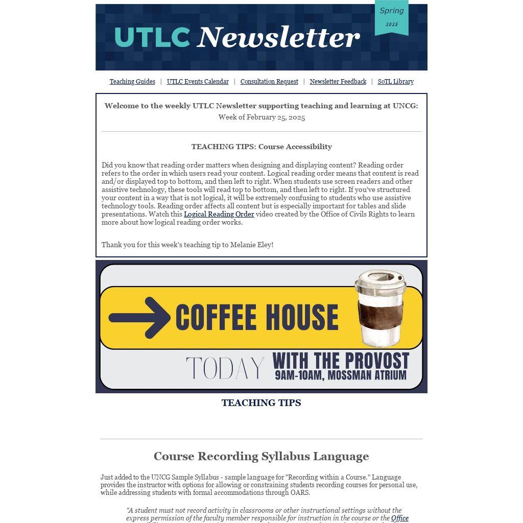 Welcome to the weekly UTLC Newsletter supporting teaching and learning at UNCG: