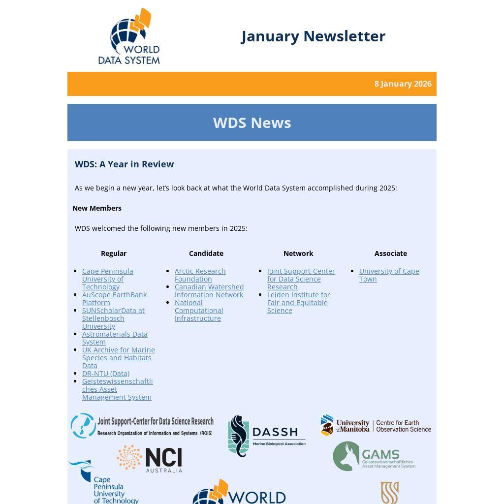 As we begin a new year, let’s look back at what the World Data System accomplished during 2025: