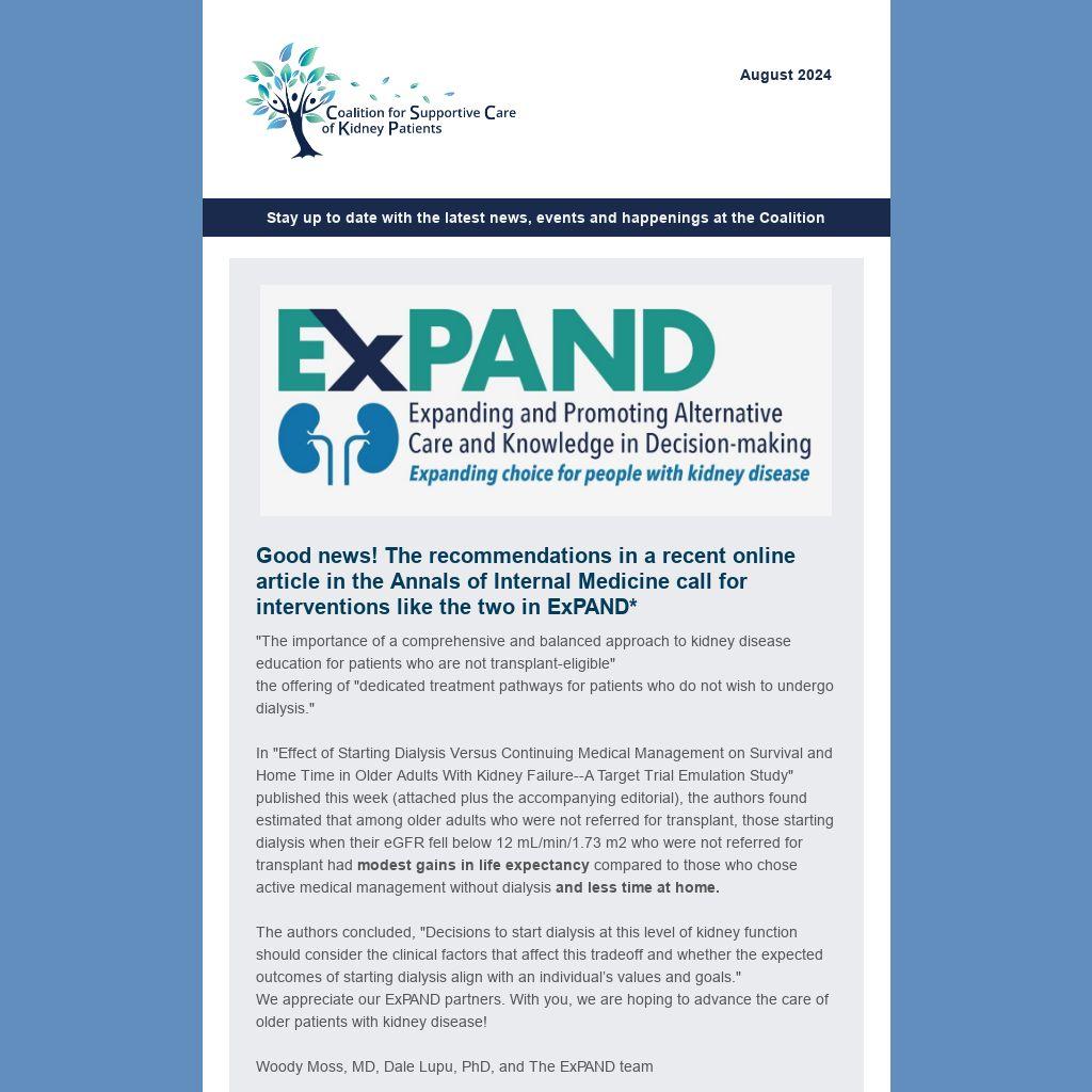 *ExPAND is the PCORI funded: Expanding and Promoting Alternative Care and Knowledge in Decision-Making. Expanding choice for people with kidney disease.