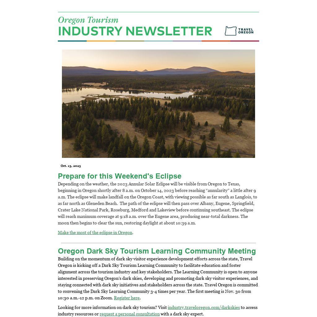 Depending on the weather, the 2023 Annular Solar Eclipse will be visible from Oregon to Texas, beginning in Oregon shortly after 8 a.m. on October 14, 2023 before reaching “annularity” a little after 9 a.m. The eclipse will make landfall on the Oregon Coast, with viewing possible as far south as Langlois, to as far north as Gleneden Beach. The path of the eclipse will then pass over Albany, Eugene, Springfield, Crater Lake National Park, Roseburg, Medford and Lakeview before continuing southeast. The eclipse will reach maximum coverage at 9:18 a.m. over the Eugene area, producing near-total darkness. The moon then begins to clear the sun, restoring daylight at about 10:39 a.m.
