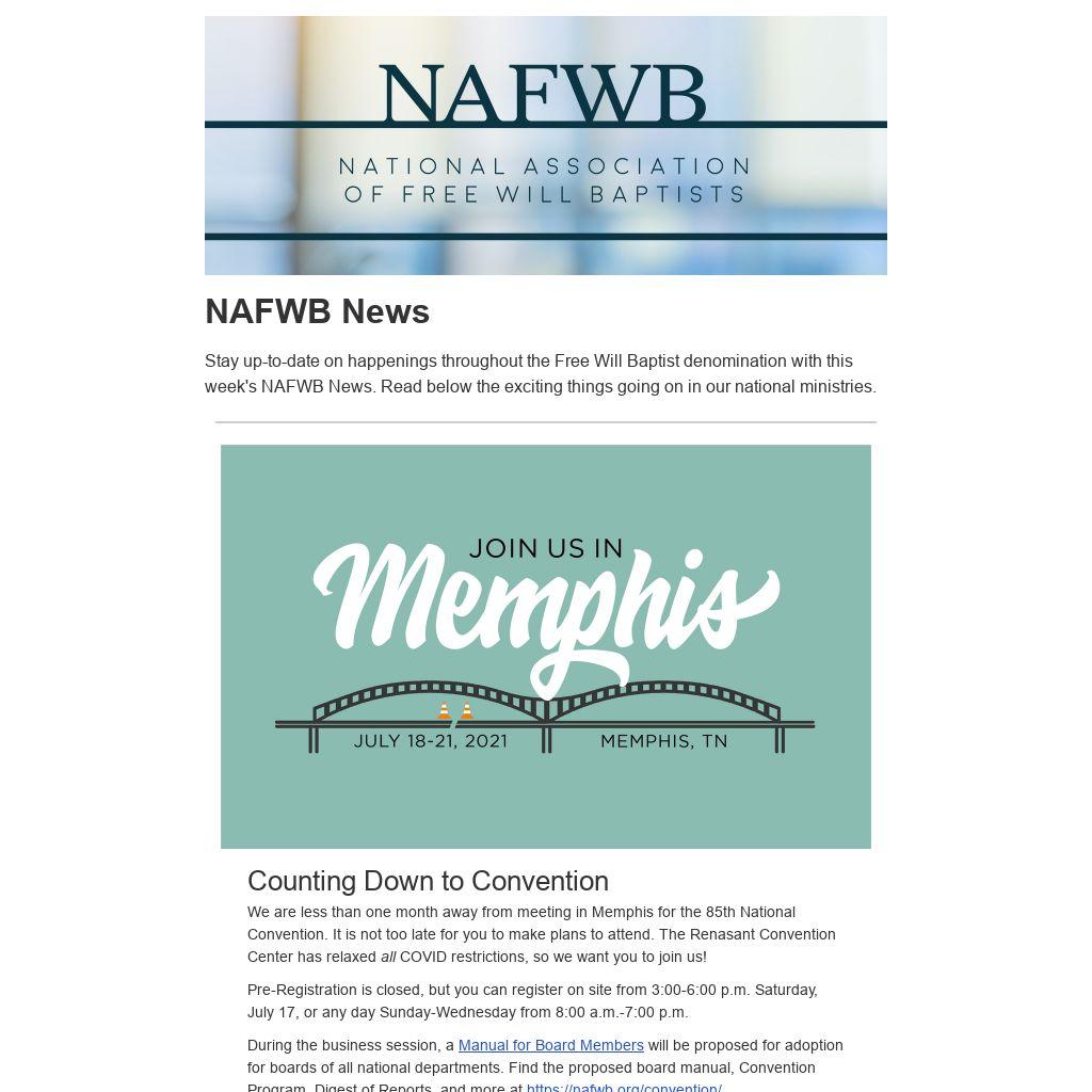 Stay up-to-date on happenings throughout the Free Will Baptist denomination with this week's NAFWB News. Read below the exciting things going on in our national ministries.