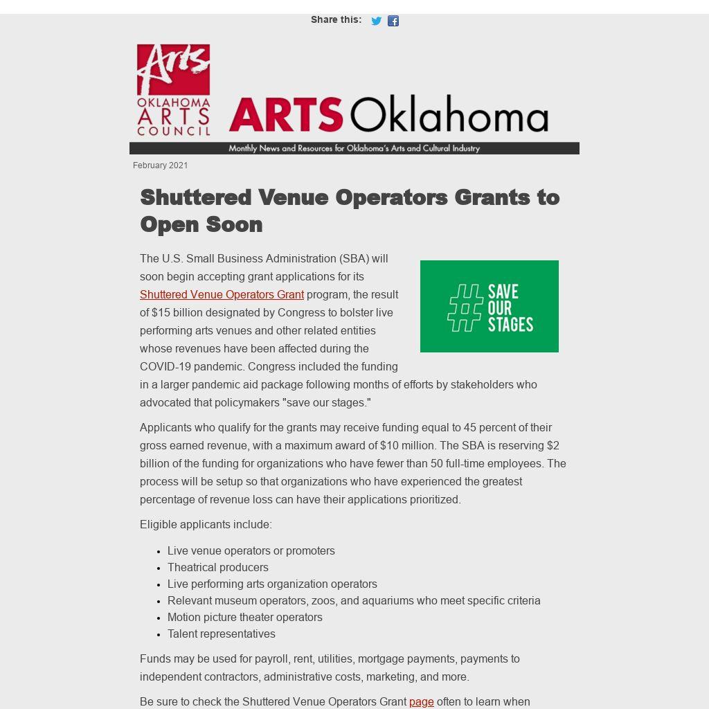| | Shuttered Venue Operators Grants to Open Soon