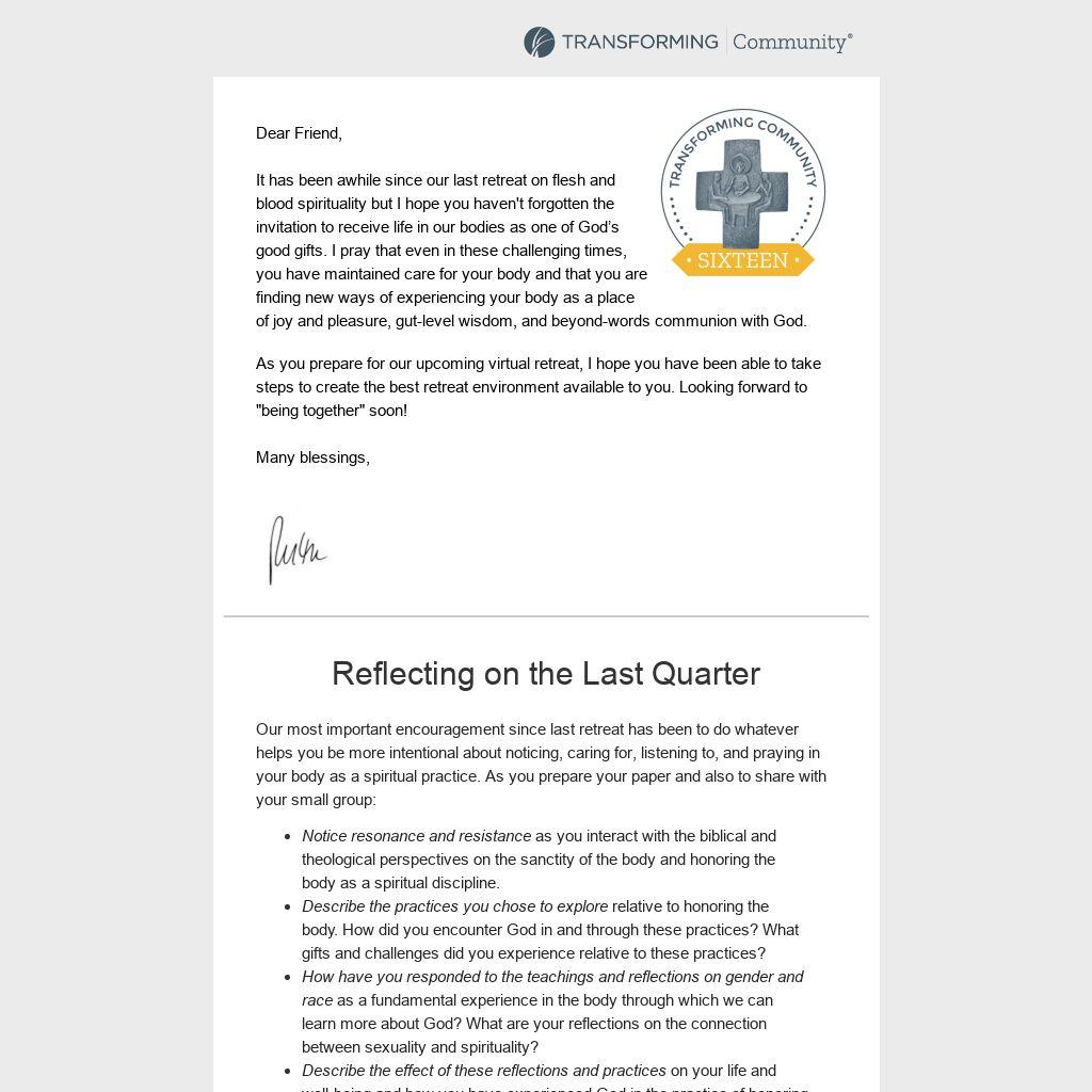 Please email Jerry at jlee@transformingcenter.org to schedule time during afternoon solitude.