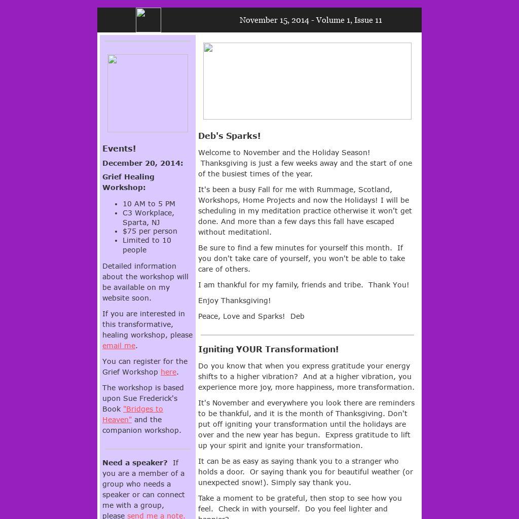 It's November and everywhere you look there are reminders to be thankful, and it is the month of Thanksgiving. Don't put off igniting your transformation until the holidays are over and the new year has begun. Express gratitude to lift up your spirit and ignite your transformation.