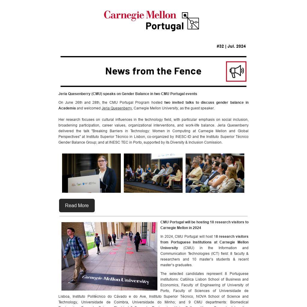 In 2024, CMU Portugal will host 18 research visitors from Portuguese Institutions at Carnegie Mellon University (CMU) in the Information and Communication Technologies (ICT) field: 8 faculty & researchers and 10 master’s students & recent master’s graduates.