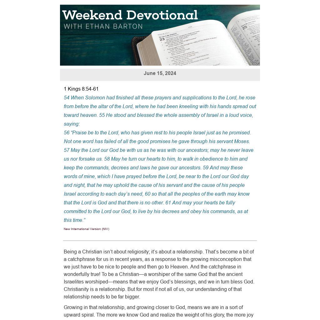 Being a Christian isn’t about religiosity; it’s about a relationship. That’s become a bit of a catchphrase for us in recent years, as a response to the growing misconception that we just have to be nice to people and then go to Heaven. And the catchphrase in wonderfully true! To be a Christian—a worshiper of the same God that the ancient Israelites worshiped—means that we enjoy God’s blessings, and we in turn bless God. Christianity is a relationship. But for most if not all of us, our understanding of that relationship needs to be far bigger.