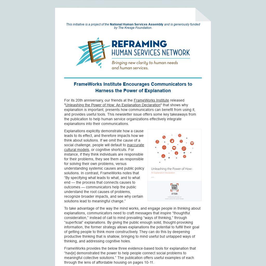 FrameWorks provides the below three evidence-based tools for explanation that “hav[e] demonstrated the power to help people connect social problems to meaningful collective solutions.” The publication offers useful examples of each through the lens of affordable housing on pages 10-11.