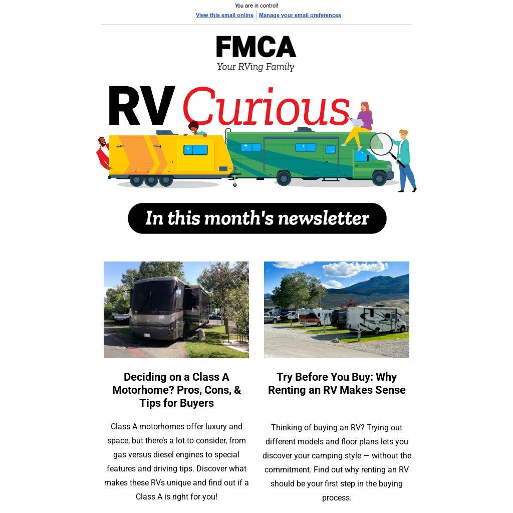 Did you know that FMCA has an RV Curious Facebook group where future RV owners can ask current RV owners questions to learn the ins and outs of RVing?