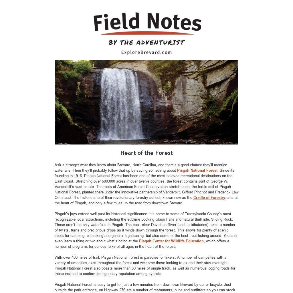 Cradle of Forestry, sits at the heart of Pisgah, and only a few miles up the road from downtown Brevard.