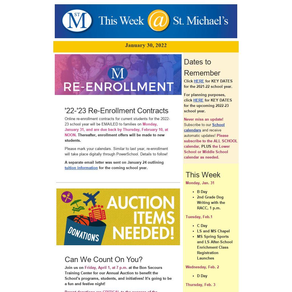 Current and past issues of "This Week at St. Michael's" are now archived on our website under "News and Events," as well as under "Community."