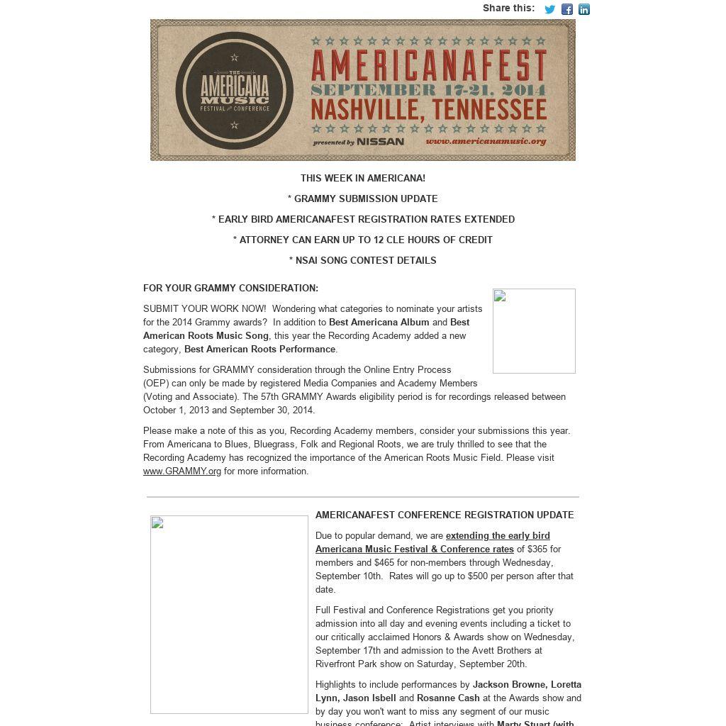 With approximately 50 daytime panels, workshops and events, along with over 175 confirmed artists to perform, the Americana Music Festival & Conference is Nashville's most comprehensive Music Industry Educational event.